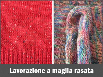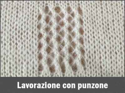 • Tipi di lavorazione: Jaquard, lavorazioni in rilievo (tipo grana di riso, nido d'ape, punto tessuto, punto pizzo, oltre ovviamente alla classica maglia rasata.
