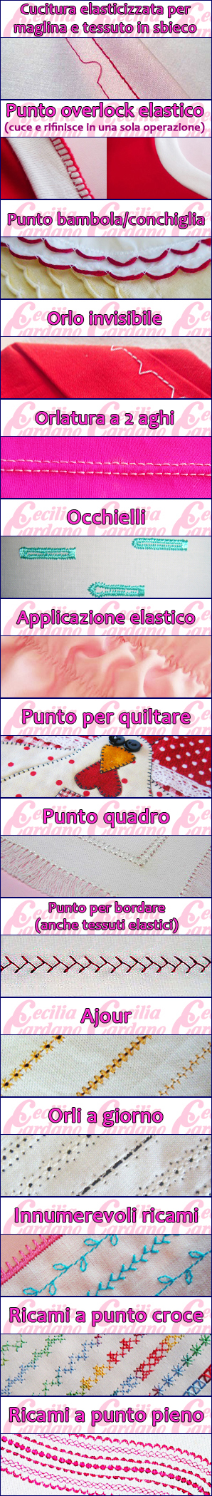 - Zig-zag cucito per attaccare elastici e unire tessuti (tipo rammendo);